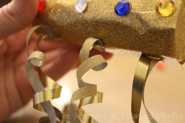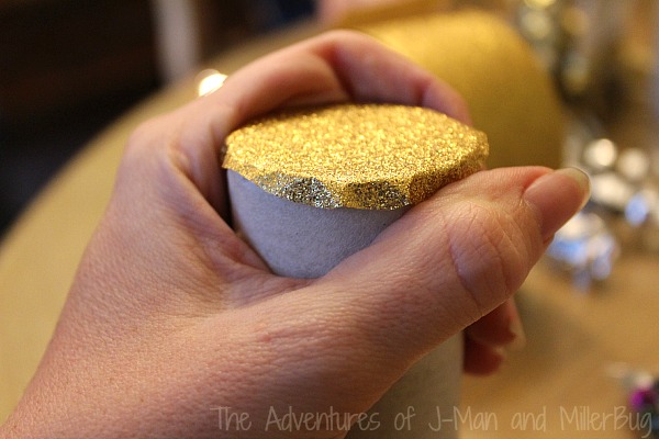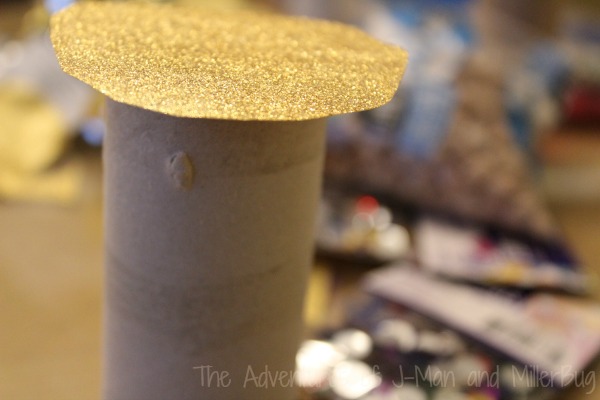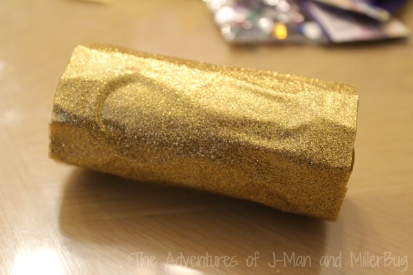 I started by looking around the house to see what items would work best. Since we’re huge on Paper Roll crafts, as soon as I spotted our stash of empty paper rolls, inspiration hit! Pair that with some sparkle and some noise making beans and we had the recipe for New Year’s Eve success!