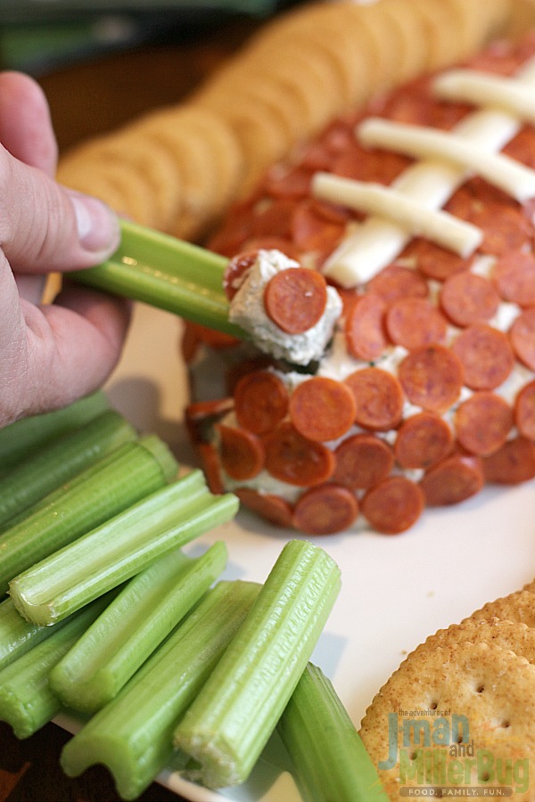 I love the fun football shaped cheese ball. It’s perfect for the big game when the family all comes over. I know they’ll love it too!