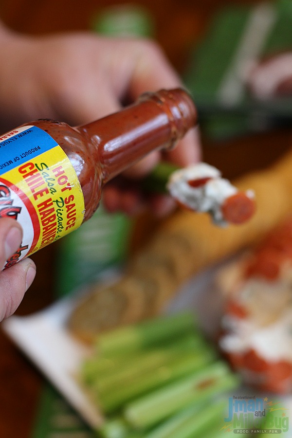 Now, I’m sure you get the cheeses included in this cheese ball but you may find yourself asking why El Yucateco® Black Label Reserve hot sauce and than answer is easy! El Yucateco® is the #1 consumer choice! This fun, flavorful brand is something everyone can agree on for game day snacking and with ingredients that come from Field to Bottle, it includes no artificial flavors but has the same great taste that has made it the King of Flavor since 1968. Available in the International Foods aisle at my local Walmart, these perfectly sized bottles are great for creating amazing homegating recipes but can also be carried in your purse or pocket so that whether you’re tailgating, homegating, at a friends BBQ or even watching the game at a restaurant, you always have your favorite hot sauce on hand!