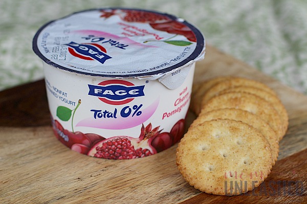 FAGE Total 0% Split Cup in Cherry Pomegranate and Whole Grain Crackers