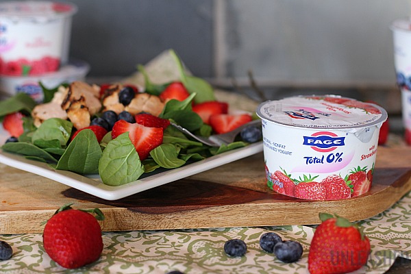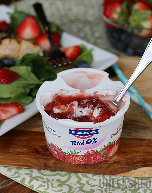 FAGE Total 0% Split Cup in Strawberry and a Berry and Spinach Salad