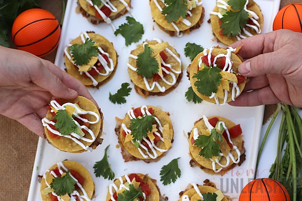 I kid you not when I say that these perfect Mini Mexican Pizzas are a finger food that always disappears way before our favorite March basketball games are over. They are fun and easy and pretty much always make me the MVP of our March basketball celebrations.