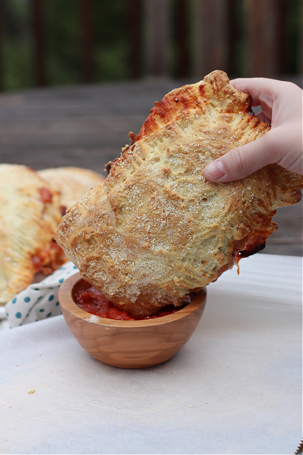 I added a side of marinara dipping sauce to my Easy Homemade Pizza Pockets and served them up immediately.