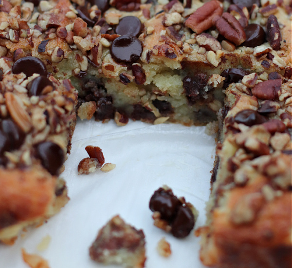In my opinion, cookie bars are easy. There is no spreading. No shaping. You just mix up the ingredients, pour them in a pan, pop them in the oven and then slice them into pieces. While there are a lot of cookie bar recipes out there, I kid you not when I tell you that these Keto Chocolate Chip Pecan Cookie Bars are the BEST ever! Let’s make them!