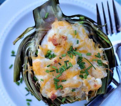 Cheesy Chicken Stuffed Artichokes (Low Carb)